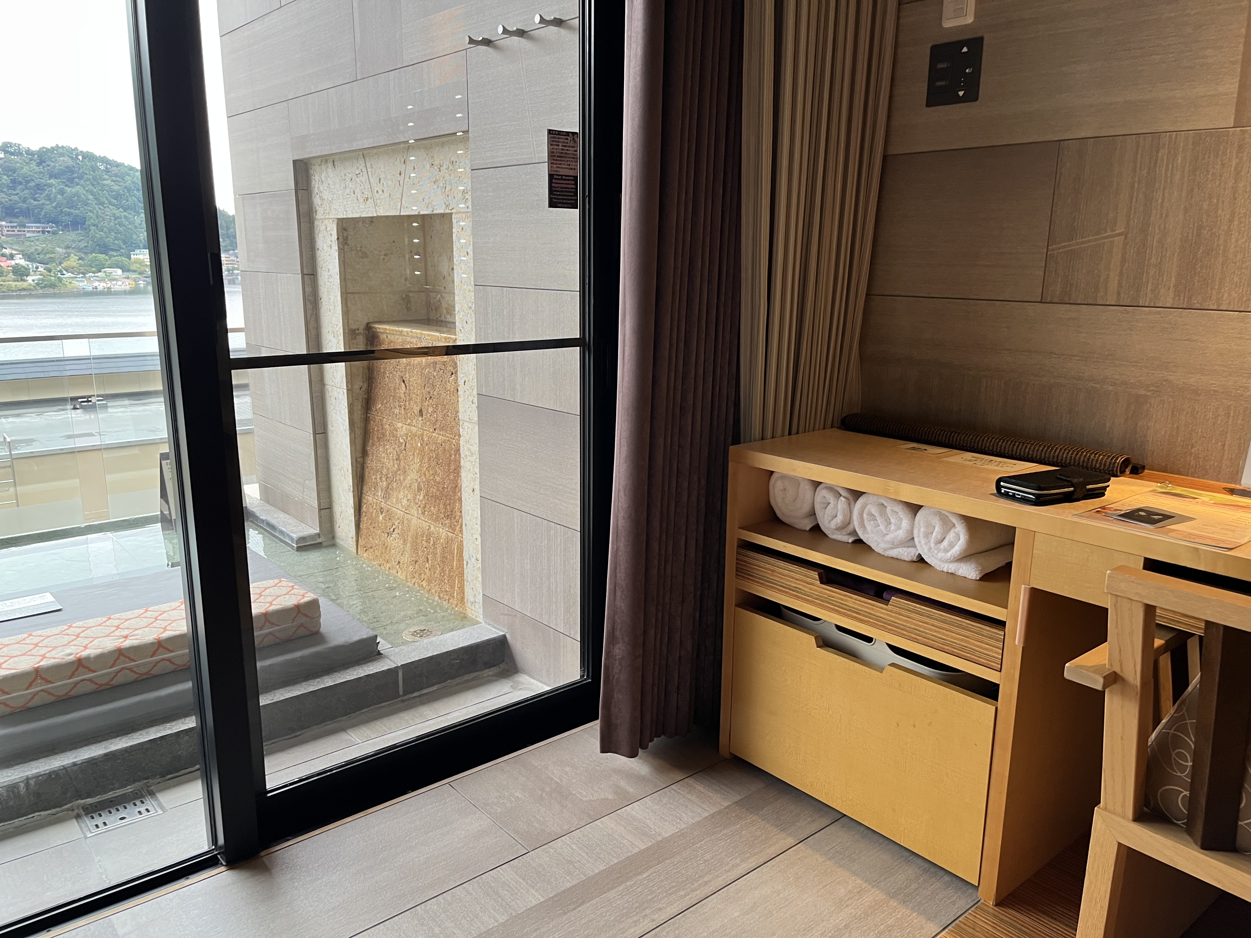 그런데 쿠쿠나 발코니 노천탕의 치명적인 단점이 있는데, 실내 욕실과 연결되어 있지 않다는 점이다. 그래서 욕실에서 샤워를 한 후, 방을 거쳐 발코니로 이동해야 한다. 아주 결정적인 단점이라 재방문이 꺼려지는 가장 큰 원인이다.