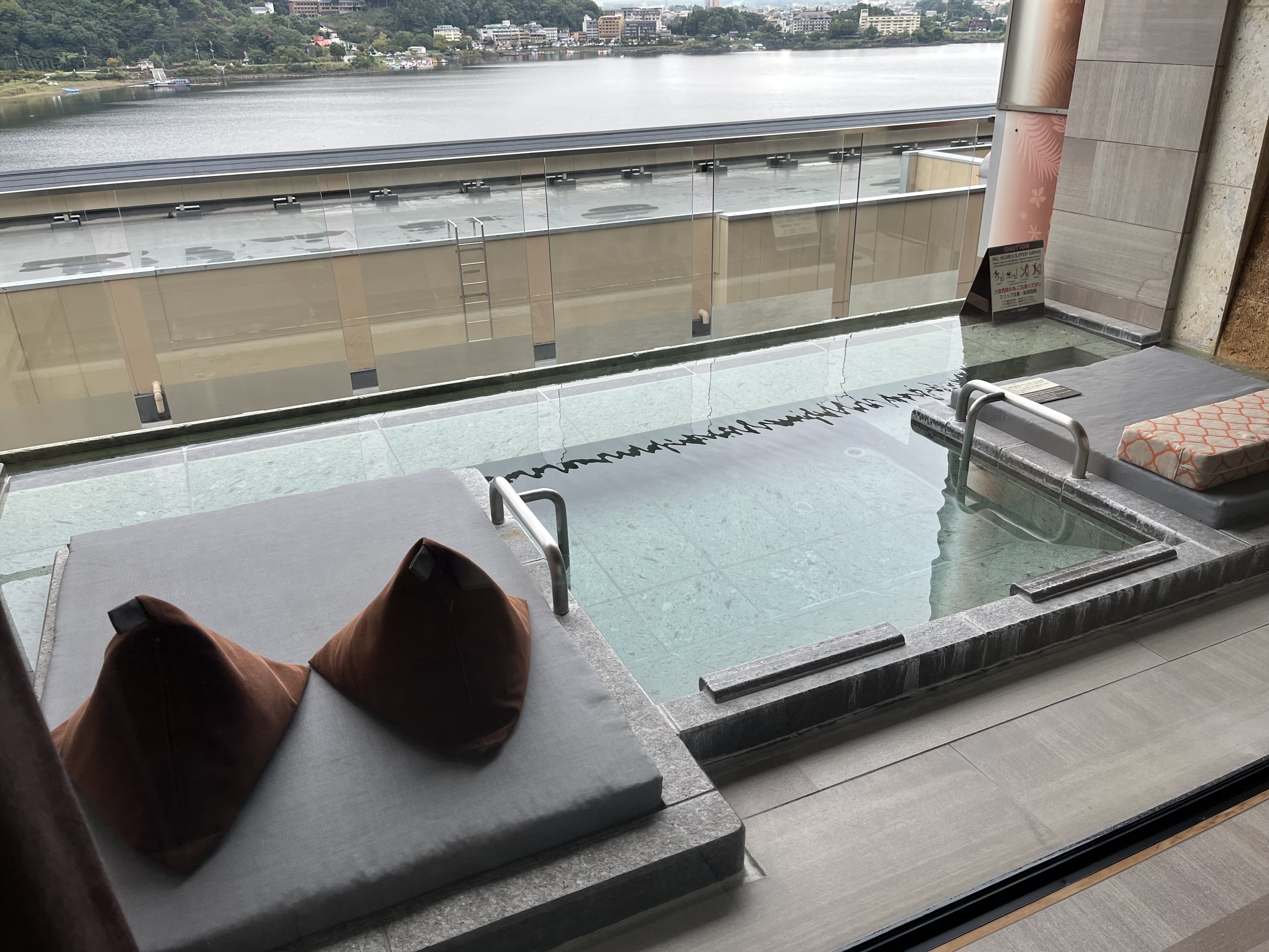 일본 온천 리조트에서 가장 좋은 건 발코니에 노천 온천탕이 있다는 것이다. 각 리조트마다 특색이 있는데, 쿠쿠나도 발코니 노천탕에서의 경치와 시설은 괜찮은 편이다.